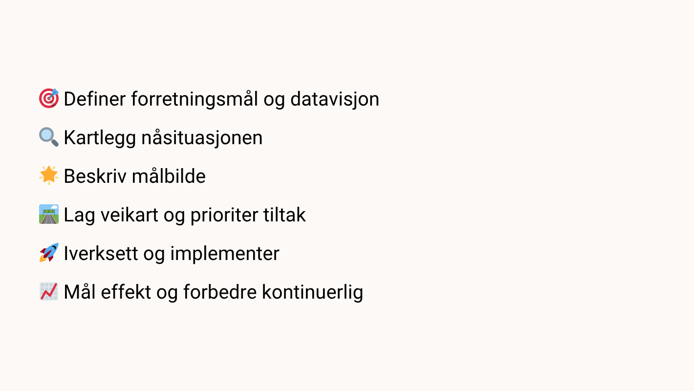 Mange virksomheter samler inn store mengder data uten en tydelig plan for hvordan de skal brukes. En god datastrategi kobler teknologi og forretningsmål for å skape reell verdi. I denne artikkelen får du en steg-for-steg guide til hvordan du lager og implementerer en datastrategi som fungerer og unngår de vanligste fallgruvene.